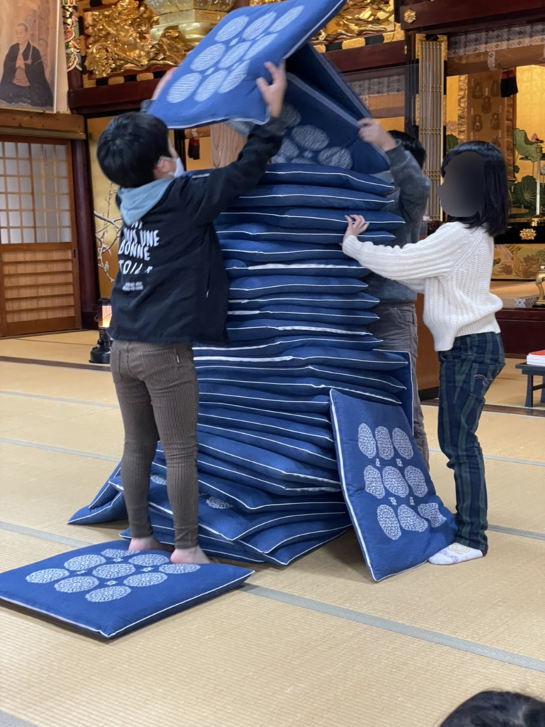まずは輪投げと座布団を積み上げるゲーム。