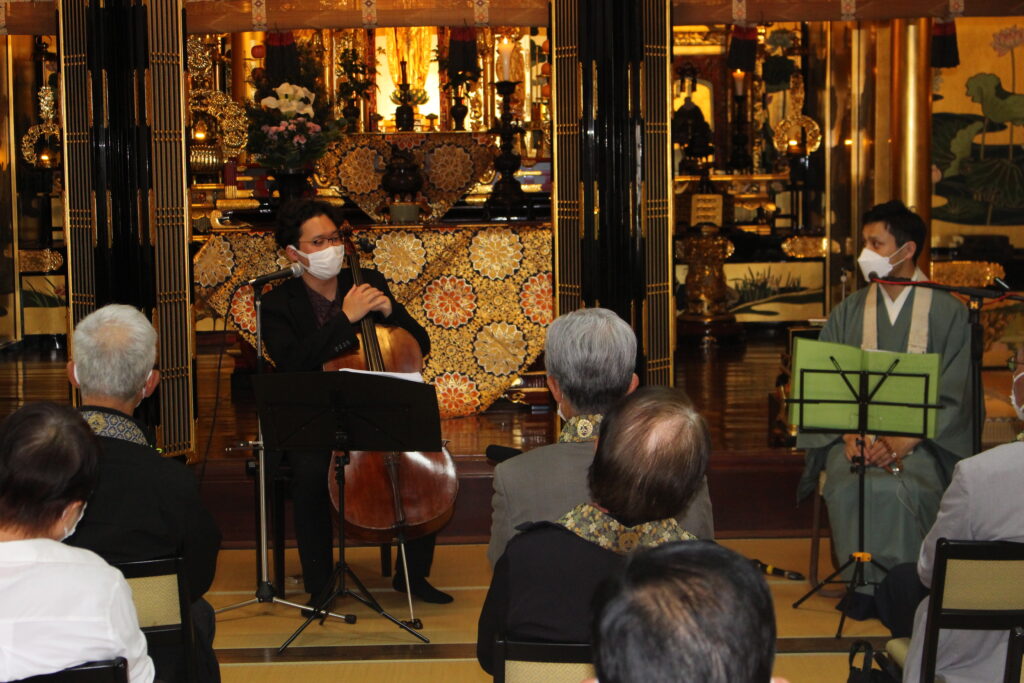 本堂に響くチェロの音