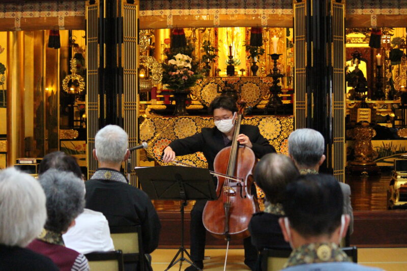 本堂に響くチェロの音