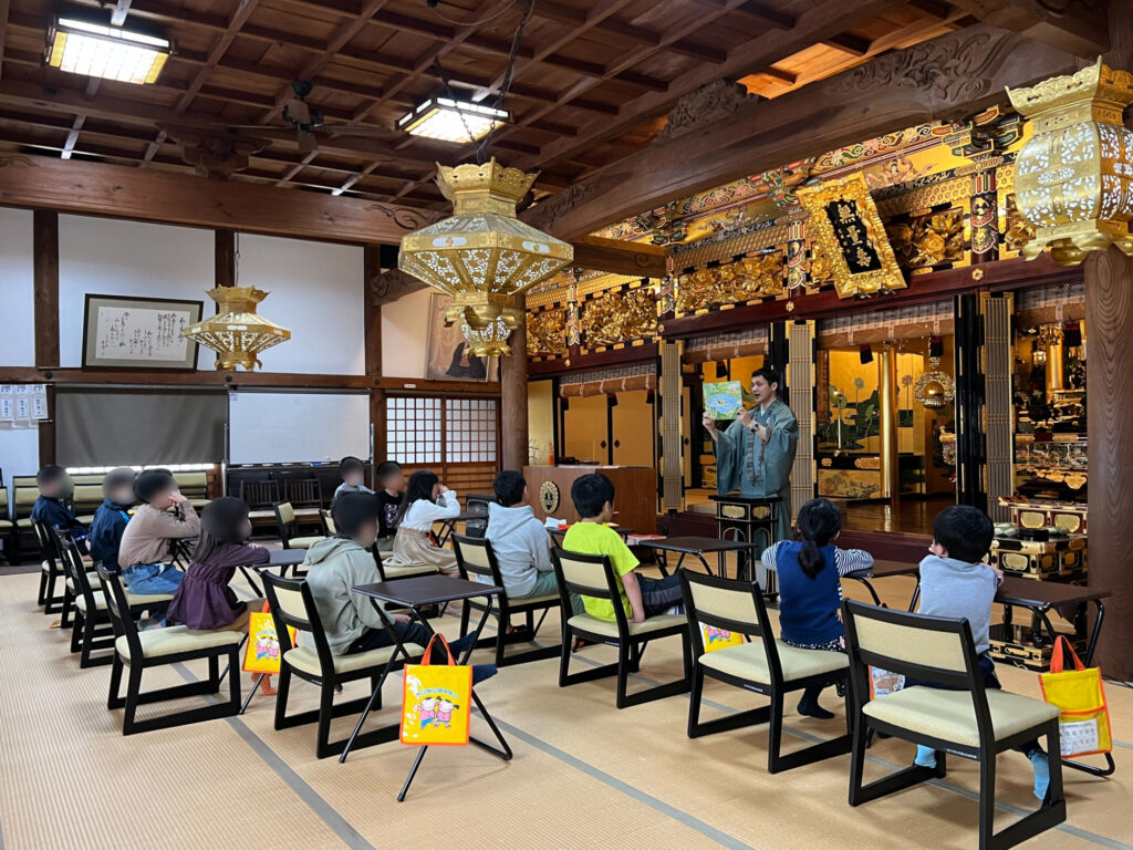 まずは、お経のお勤め。そして絵本の読ませてもらいました。
