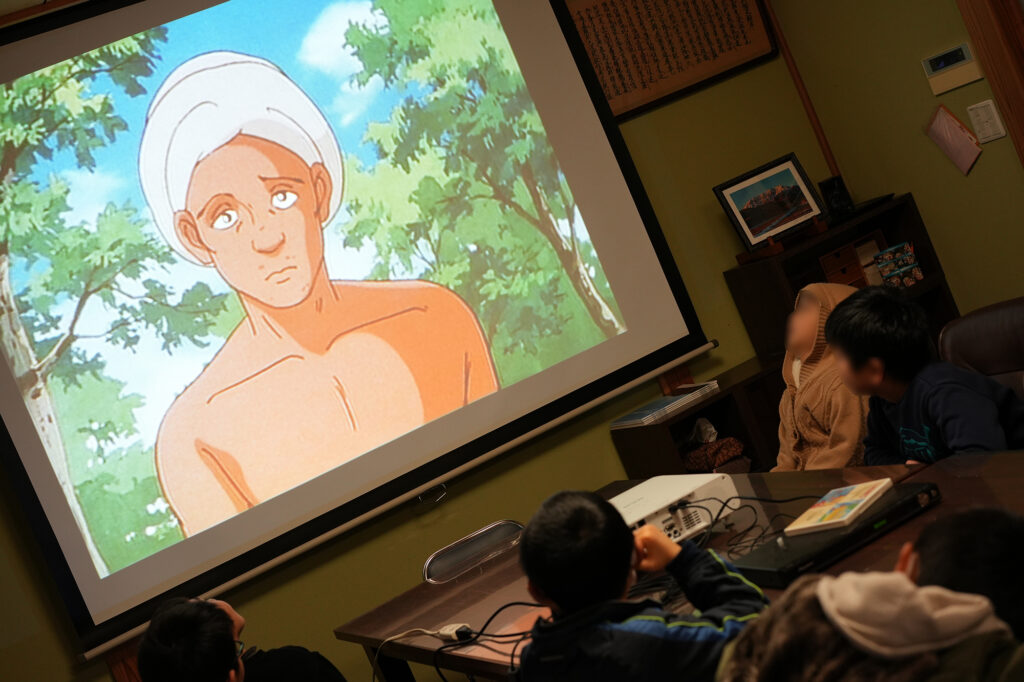 お経のお勤めとご法話のあと、今月は「仏典ビデオ」を鑑賞しました。