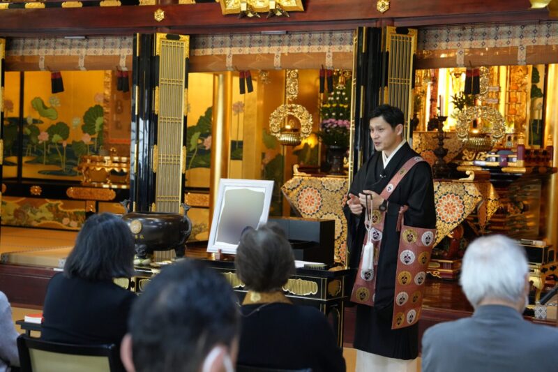 記念品をお渡しした後には、住職からのご法話の時間。