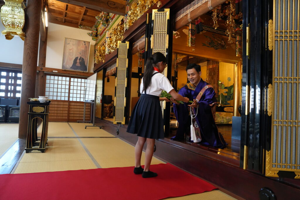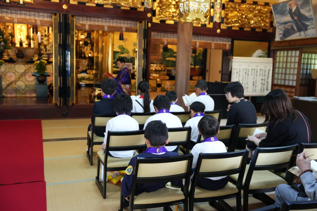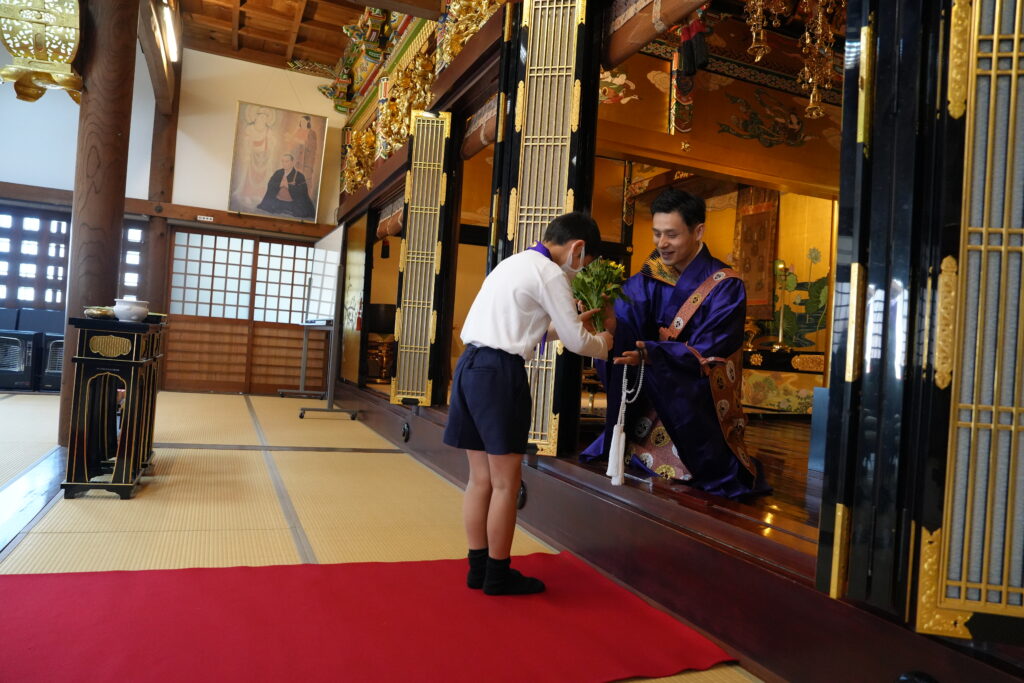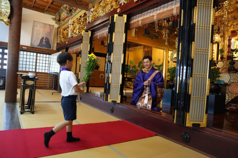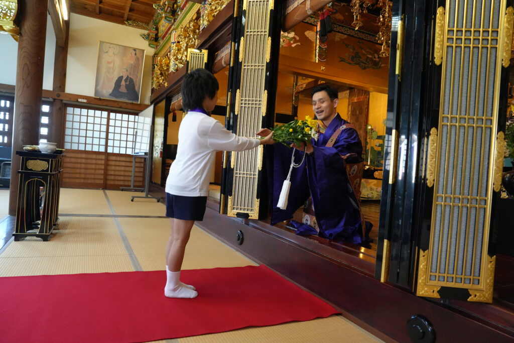 日曜学校のみんなには、初めてお寺にお参りする赤ちゃんをお祝いする献花を担当してもらいました。