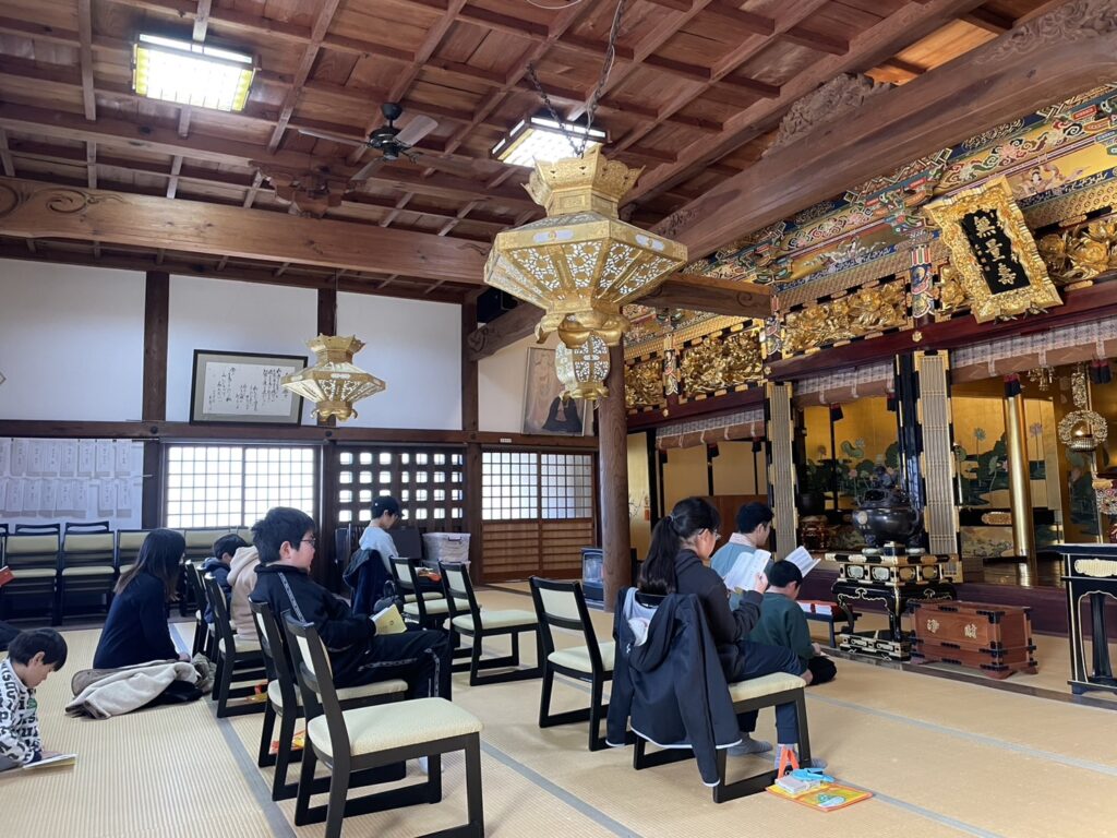 まずはみんなでお勤めです。「らいはいのうた」をご一緒に。