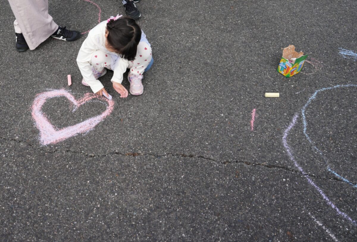 チョークを使って、自由にお絵描き。