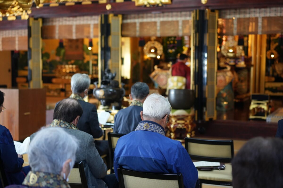 皆さんと一緒に正信偈のお勤め。