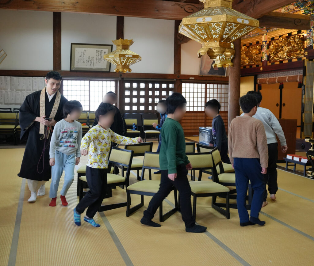 現在は月に1回の開催です。内容は、お経のおつとめとご法話、それからゲームとおやつ。