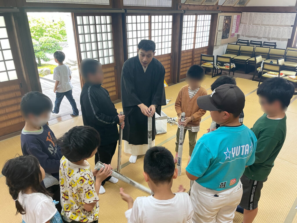 いつも通り、はじめに「らいはいのうた」のお勤めをし、ご法話をすこし聞いてもらいました。