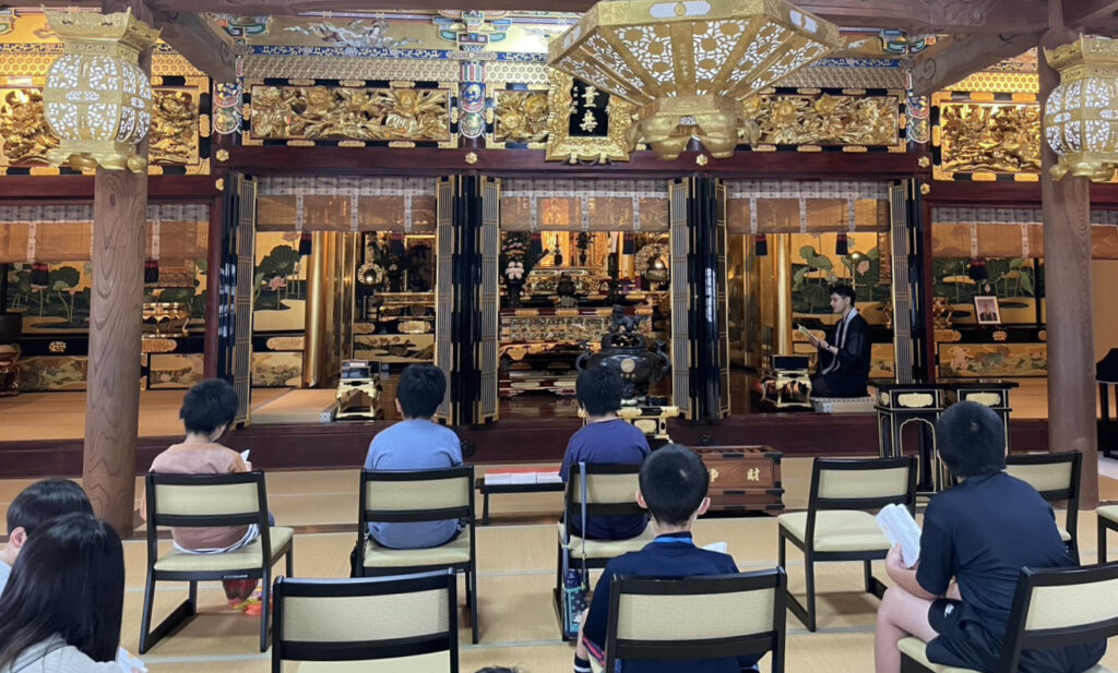 最初に「らいはいのうた」のおつとめと少しのご法話。