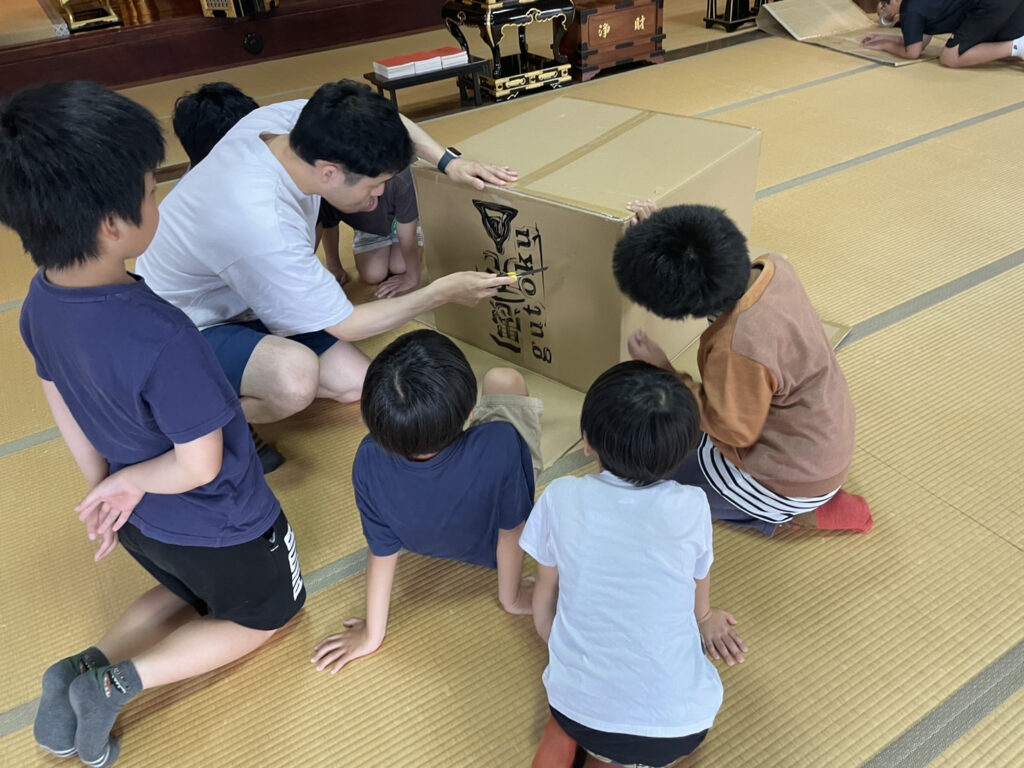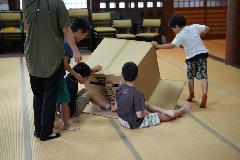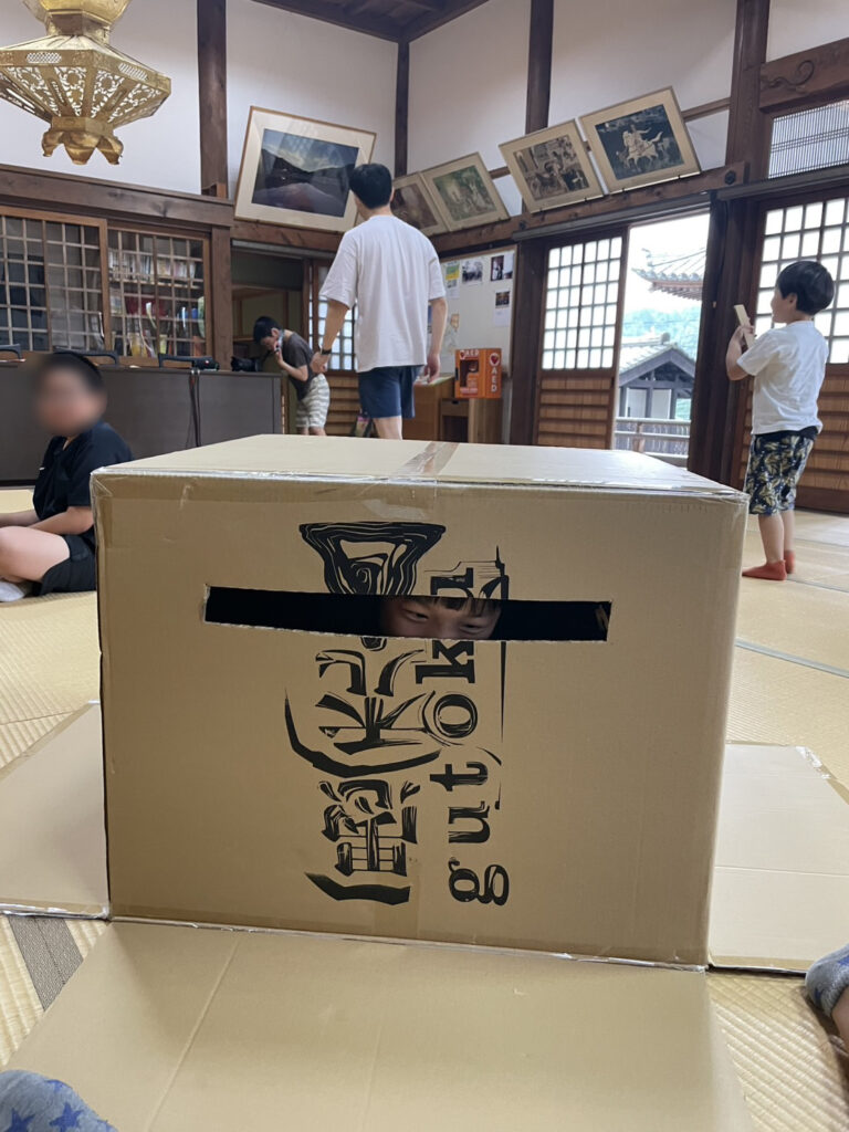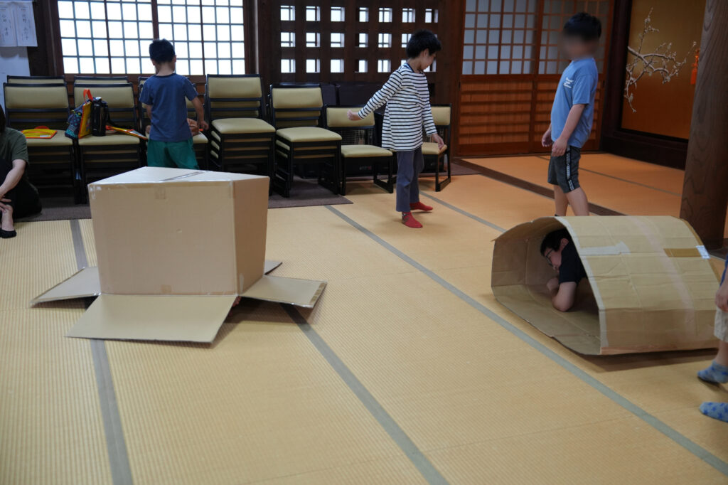 レクリエーションの時間は、まずはダンボールを使って遊びました。