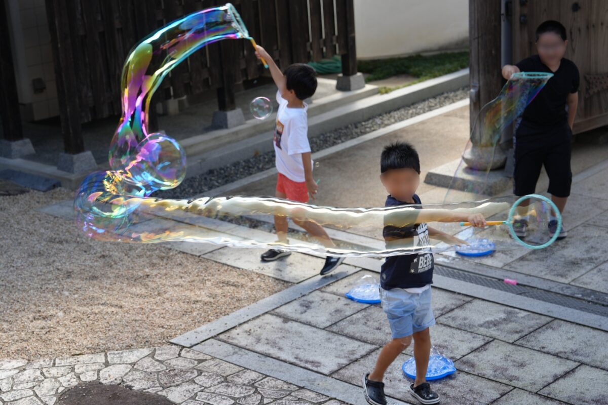 真夏の日差しの中、日曜学校を開催しました。 シャボン玉大会! 今回はシャボン玉... -
