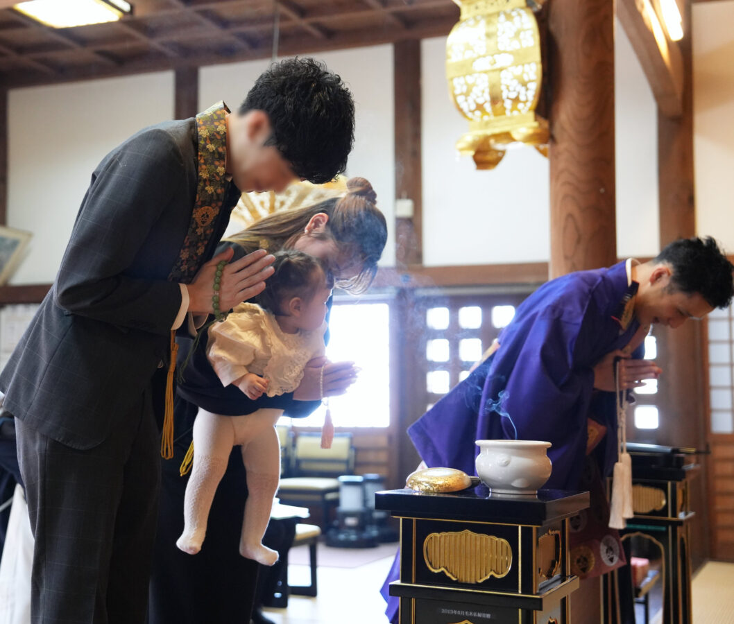 赤ちゃんが生まれて初めてお寺にお参りする日を、初参式としてお祝いします。新しいいのちの誕生を喜び、仏さまに報告する大切な節目です。新しい家族とともに、ぜひお参りください。